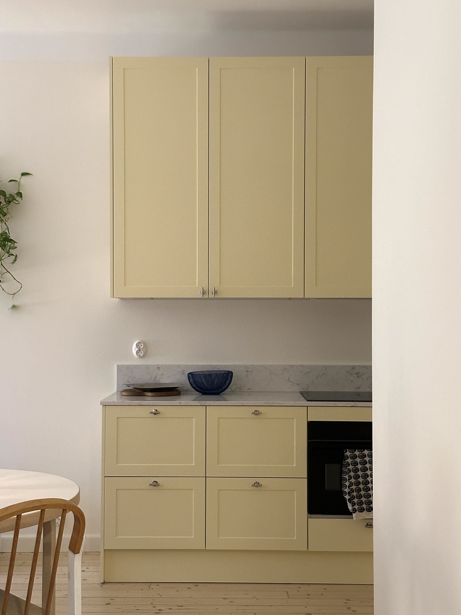 Uusi keittiö nivoutuu nyt osaksi kodin oleskelutilaa. Sen värimaailmassa yhdistyy raikkaus ja historia: pehmeät sävyt, selkeä linjakkuus ja pienet yksityiskohdat luovat kokonaisuuden, joka tuntuu omalta ja kodikkaalta. Tämä muutos on hyvä esimerkki siitä, miten vanhan rakenteen ehdoilla voi syntyä jotain täysin uutta – kun suunnittelu on tarkkaa ja kokonaisuutta ajatellaan rohkeasti.